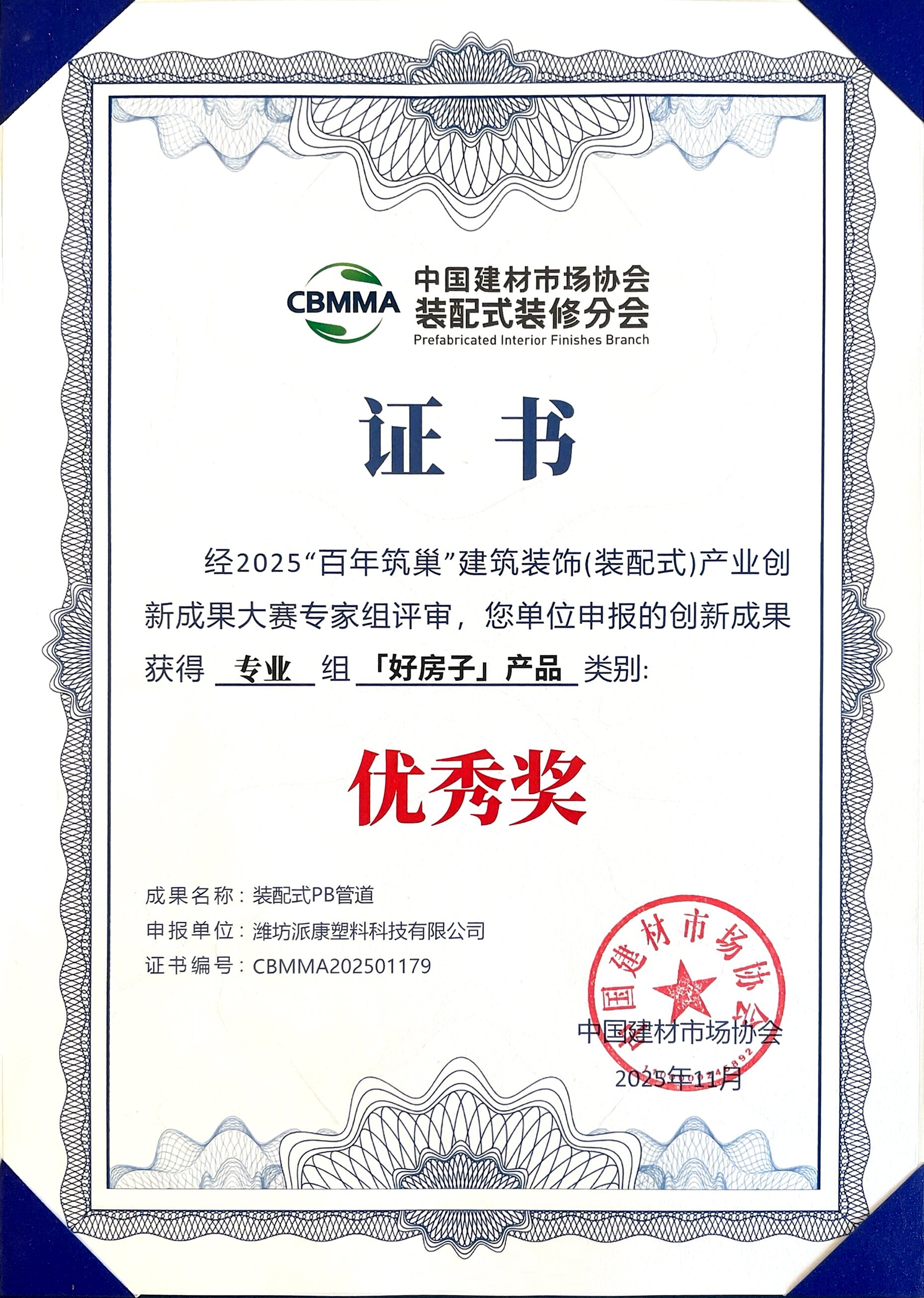 装配式装修以其“标准化设计、工业化生产、装配化施工、信息化管理”的核心特点,正重塑着传统装修模式。当大家将焦点放在整体卫浴、集成墙面、架空地板等大型部品时,作为“建筑血脉”的管道系统,其性能与适配性直接决定了整个装配式系统的可靠性、耐久性与施工效率。派康的获奖,标志着行业对“精细部件集成”的重视达到了新高度。